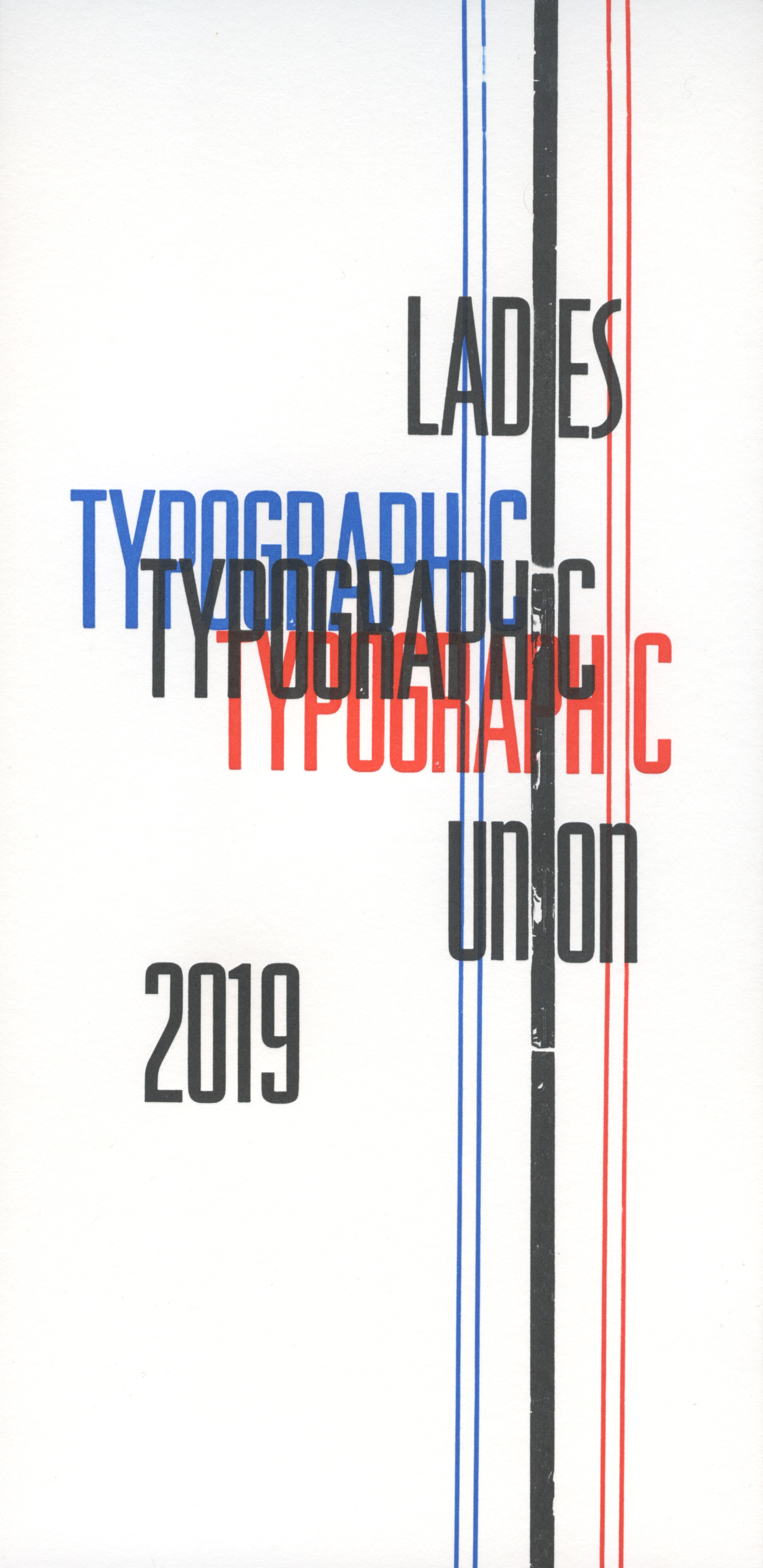 This image was printed from metal type and is the cover of the 2019 Ladies Typographic Union calendar.